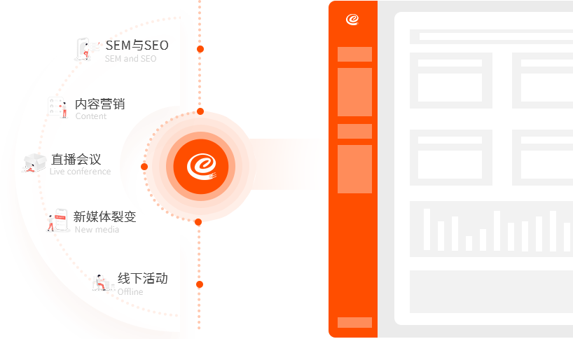 集成西安網(wǎng)站設(shè)計(jì)、西安網(wǎng)站制作、搜索引擎SEM、SEO、內(nèi)容營(yíng)銷、直播、新媒體裂變、線下活動(dòng)等營(yíng)銷工具,助力企業(yè)大數(shù)據(jù)獲客;