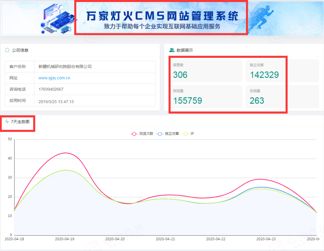 此次“萬(wàn)家燈火CMS系統(tǒng)”的升級(jí)版,1. 在原有的基礎(chǔ)上,增加網(wǎng)站關(guān)鍵詞7天走勢(shì)圖以及網(wǎng)站關(guān)鍵詞在各大主流搜素引擎占比餅狀圖,將數(shù)據(jù)更加精細(xì)化,*化。