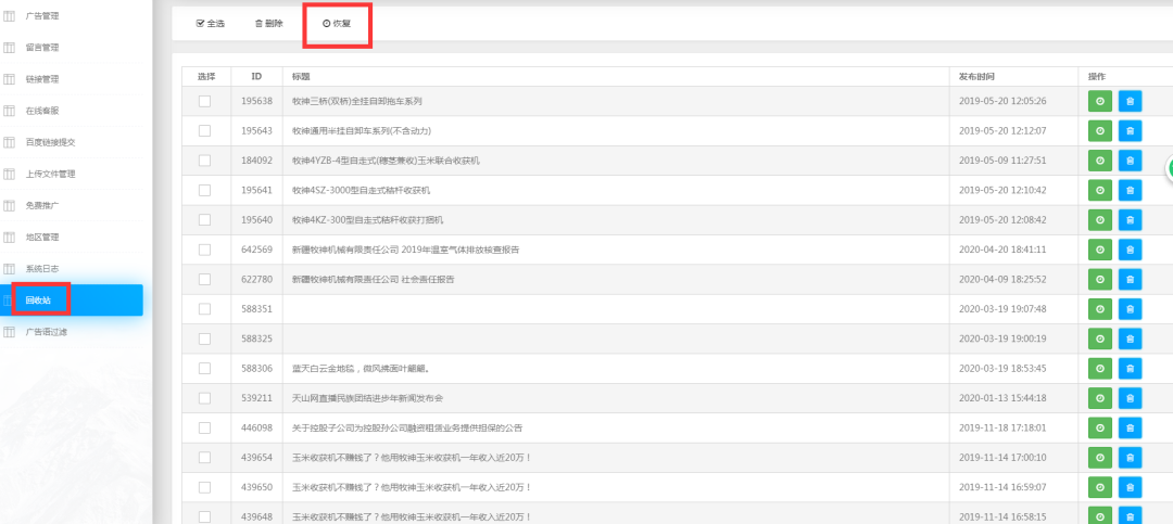 信息誤刪,悔不當(dāng)初?沒(méi)關(guān)系,萬(wàn)家燈火CMS系統(tǒng)回收站上線,再也不用擔(dān)心信息刪除后找不回來(lái)了。