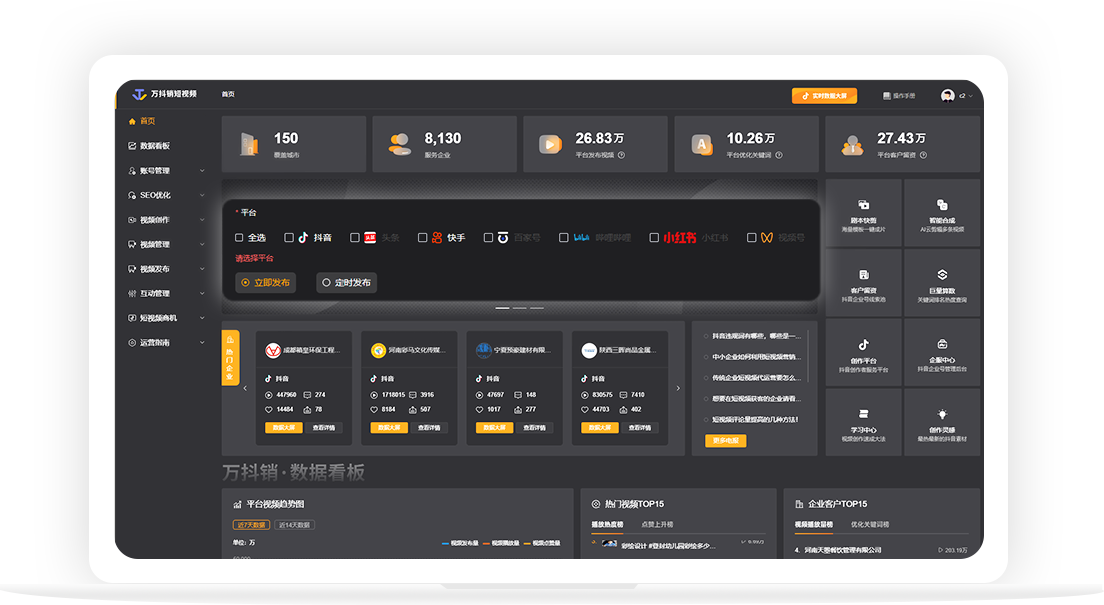 整合多個(gè)頭部平臺(tái),抖音、快手、頭條、西瓜、B站、小紅書、視頻號(hào)視頻全網(wǎng)分發(fā),一鍵智能發(fā)布,省時(shí)省心省力,